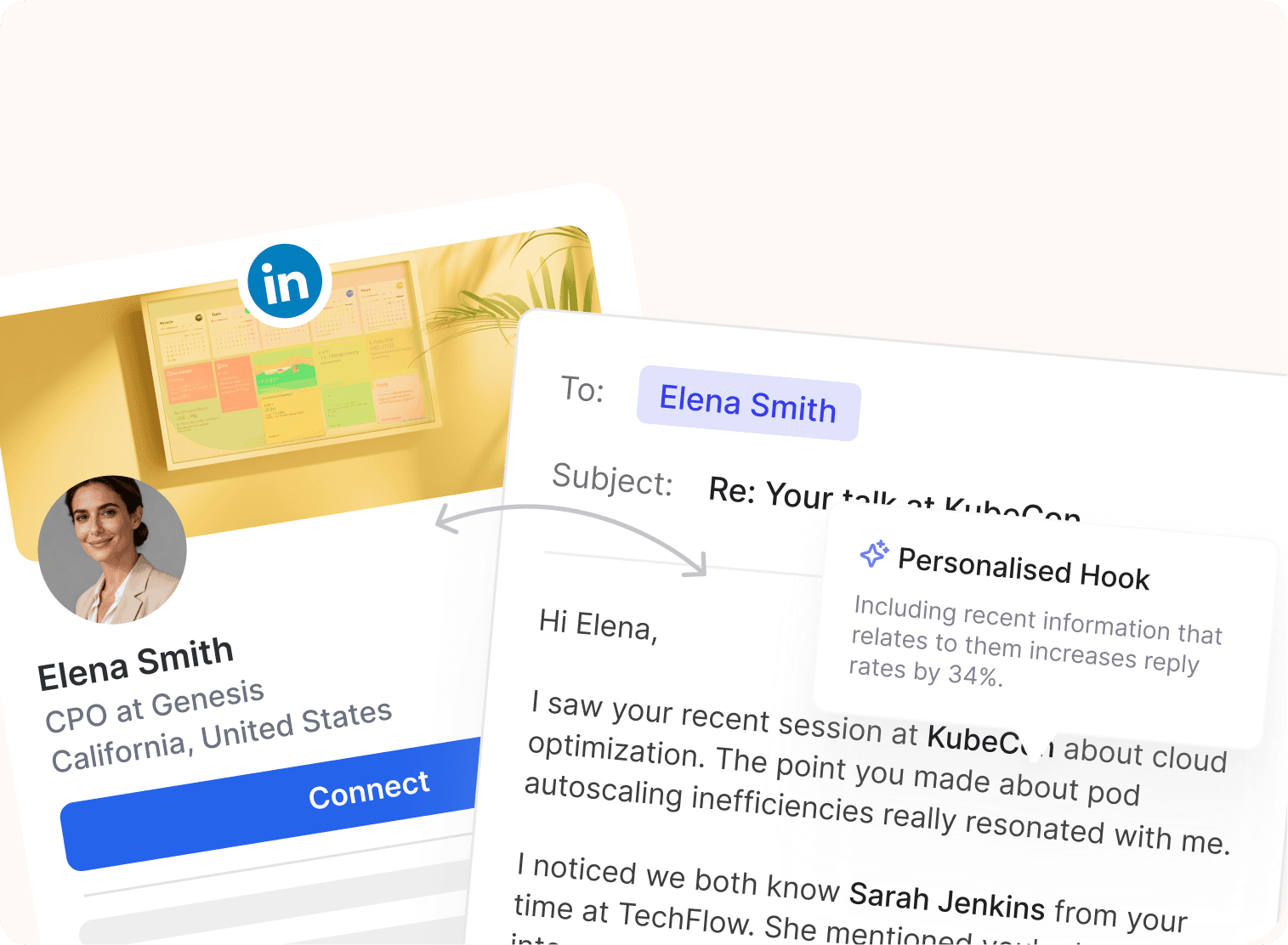 We execute coordinated touches across email and LinkedIn. We view their profile, send a connection request, and follow up via email—creating a 'surround sound' effect that boosts reply rates.