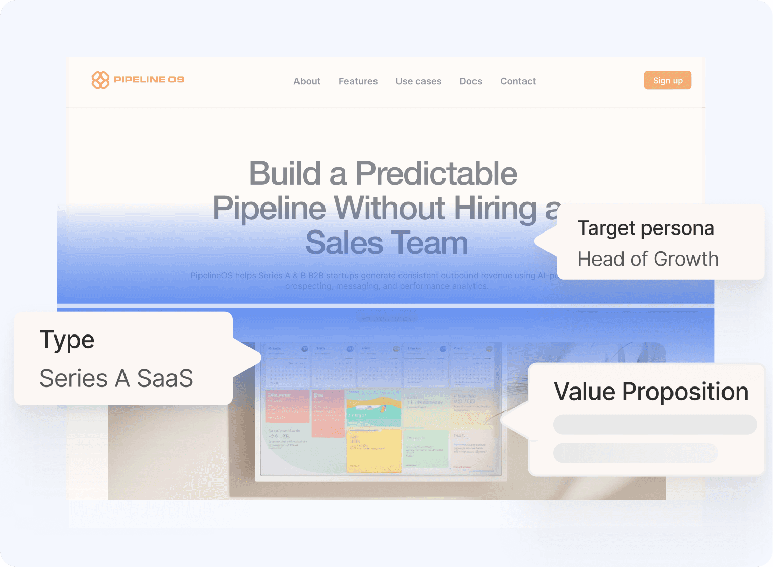 We scan your website to understand your value proposition and Ideal Customer Profile. We use this data to determine exactly who you should be talking to - not just by title, but by fit.